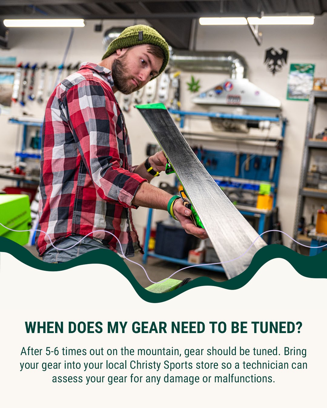Come see us at Christi Sport at the base (in Treasury Center) to tweak your ride. Skis and snowboards should be tuned after every 5th to 6th time on snow. Christi Sports offers 24-hour turnaround on most services.