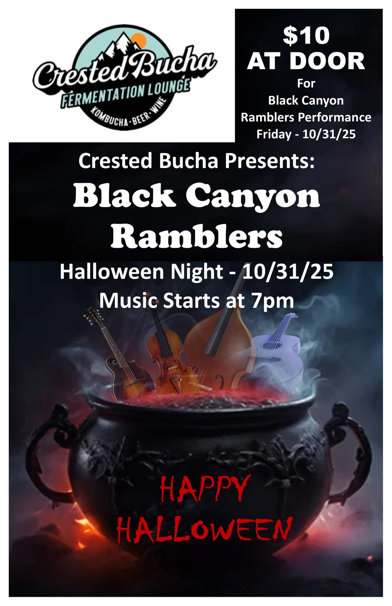The Black Canyon Ramblers will perform at Crested Bucha in Gunnison, CO on Halloween from 7pm to 9pm.
