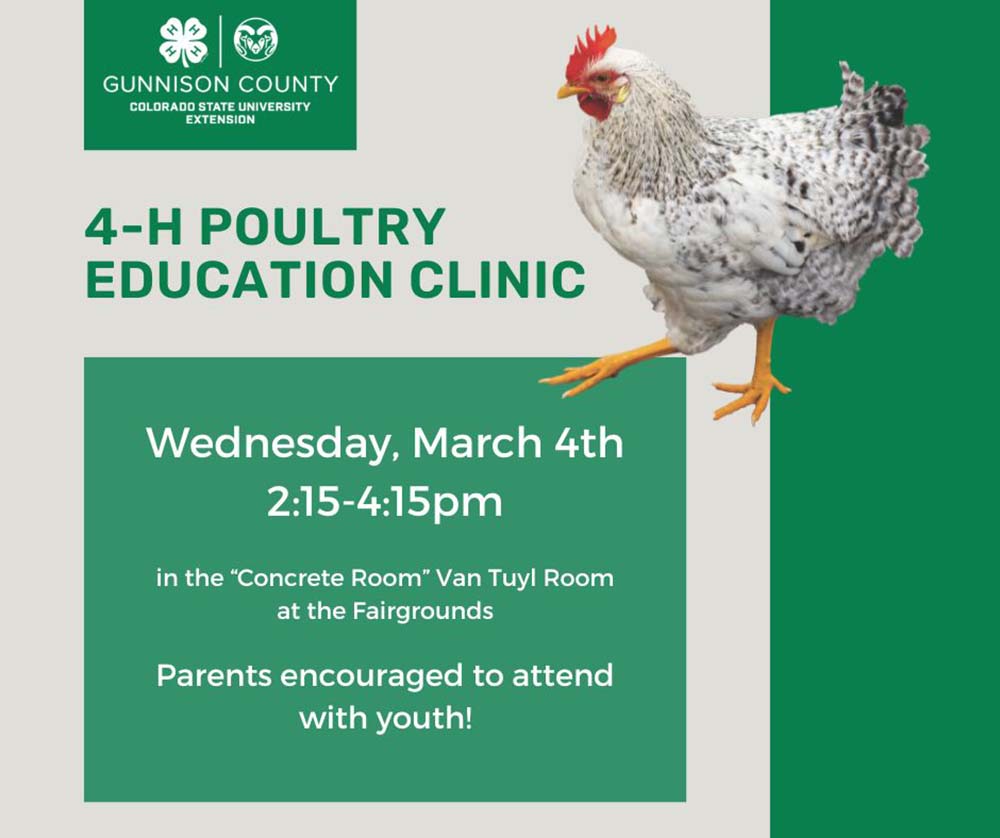 Attention 4-H Poultry project folks in Gunnison & Hinsdale counties.