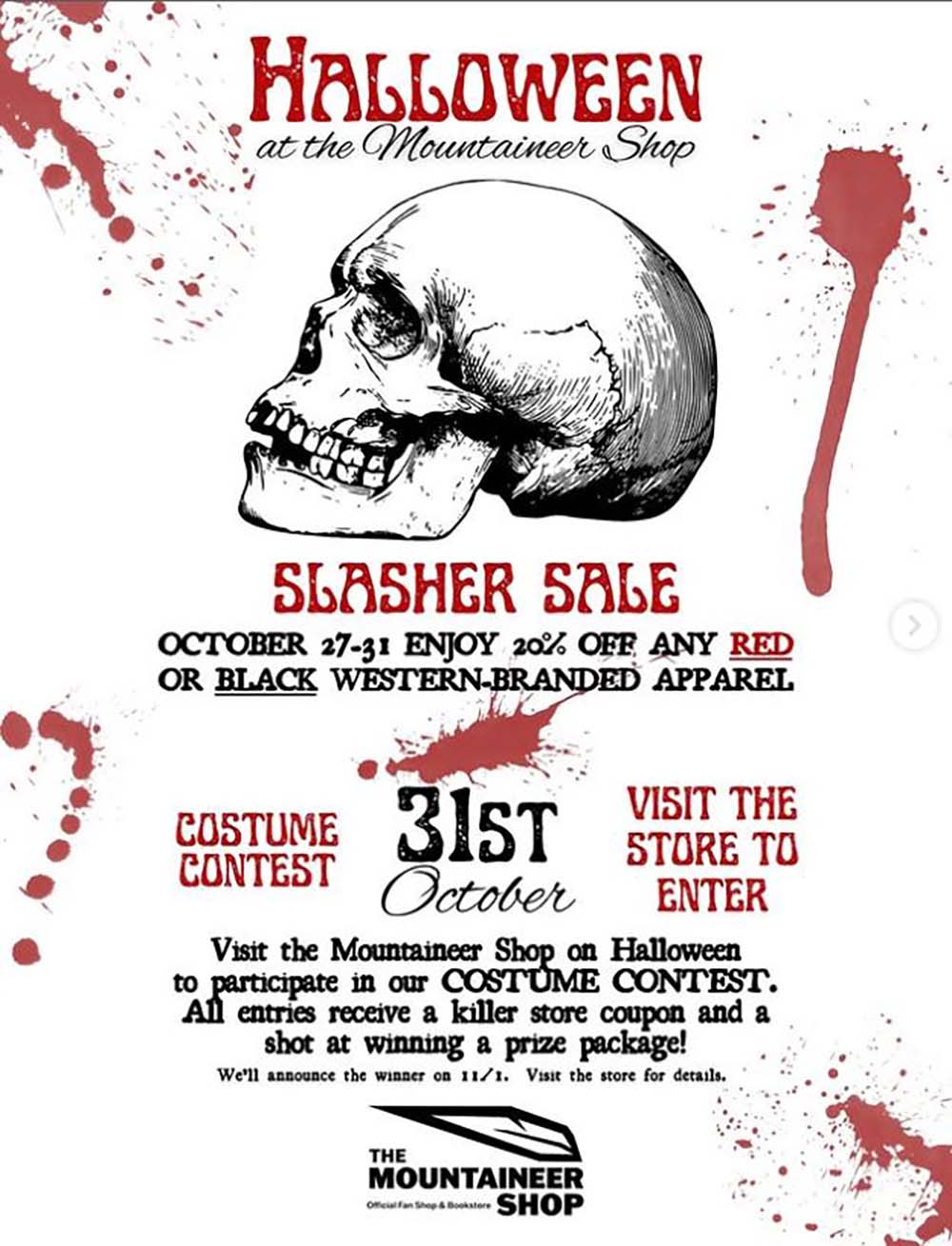 On Friday, October 31st come participate in our costume contest in the Mountaineer Shop from 7:45AM-5:00PM.