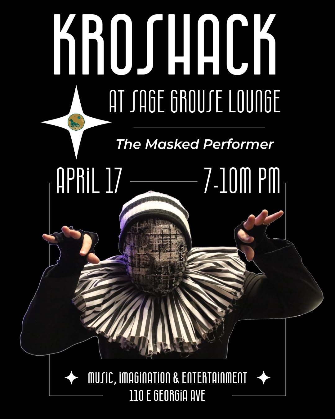 Step into a night of mystery, rhythm, and immersive performance as Kroshack — The Masked Performer takes over Sage Grouse Lounge.