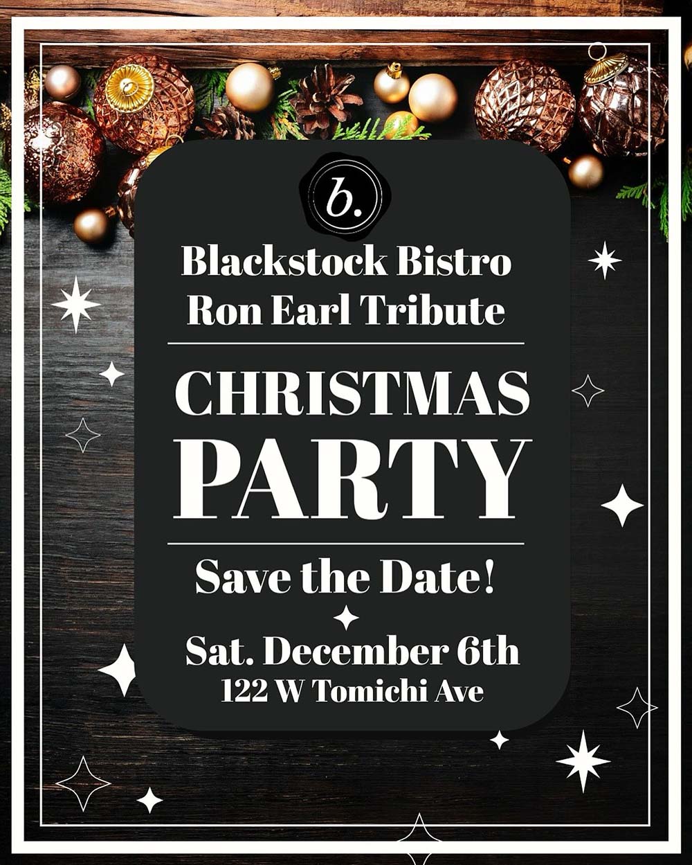 Blackstock Bistro’s annual Christmas party is Saturday December 6th.