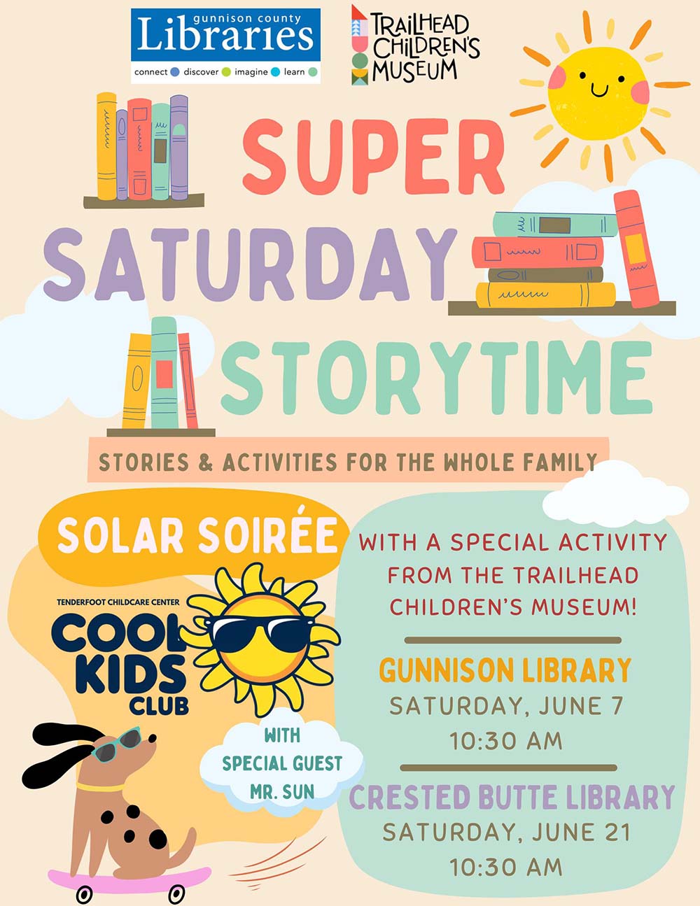 Join us at the Gunnison Library at 10:30 am on Saturday, June 7 for Super Saturday Storytime.