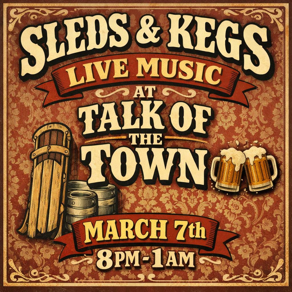 On Day 3 of Sleds & Kegs the real late-night energy kicks in at Talk of the Town. Sleds & Kegs takes over both floors for a stacked night of live music, pulsing beats, and full-throttle mountain-town mayhem.