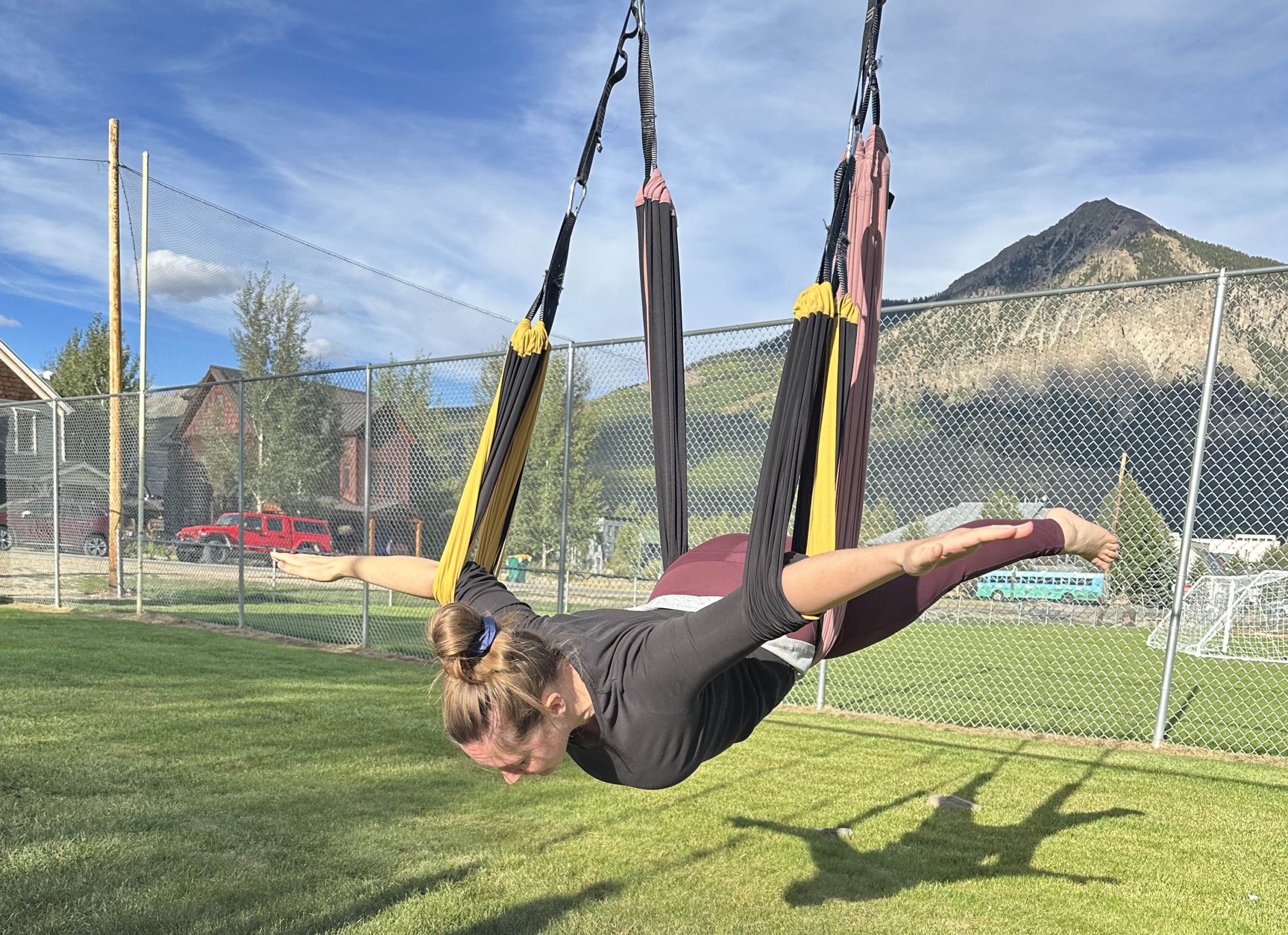 This slower-paced practice will involve yoga hammocks and focus on breathing, inversions, meditation, sound healing, and reiki.