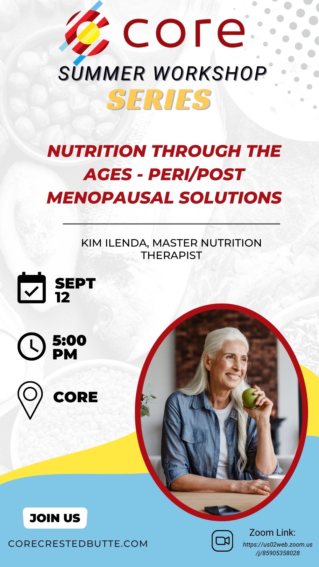 Learn all about nutrition though the ages! This free seminar will discuss nutrition, including peri/post menopause solutions!