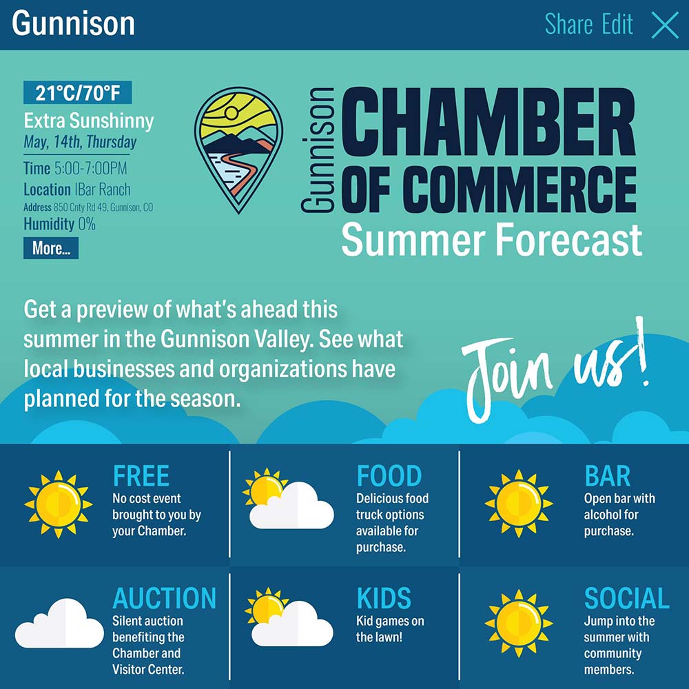 Kick off the season at the Gunnison Chamber of Commerce Summer Forecast—your first look at everything happening in the Gunnison Valley this summer.