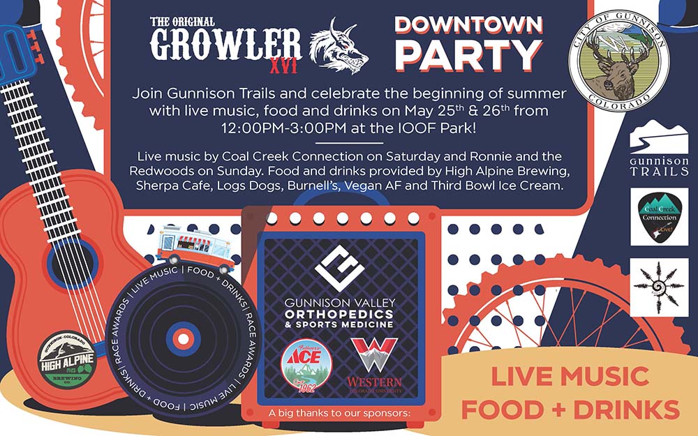 Join Gunnison Trails and celebrate the beginning of summer with live music, food nd frinks on May 25th and 26th from 12:00 pm to :00 pm at IOOF Park.