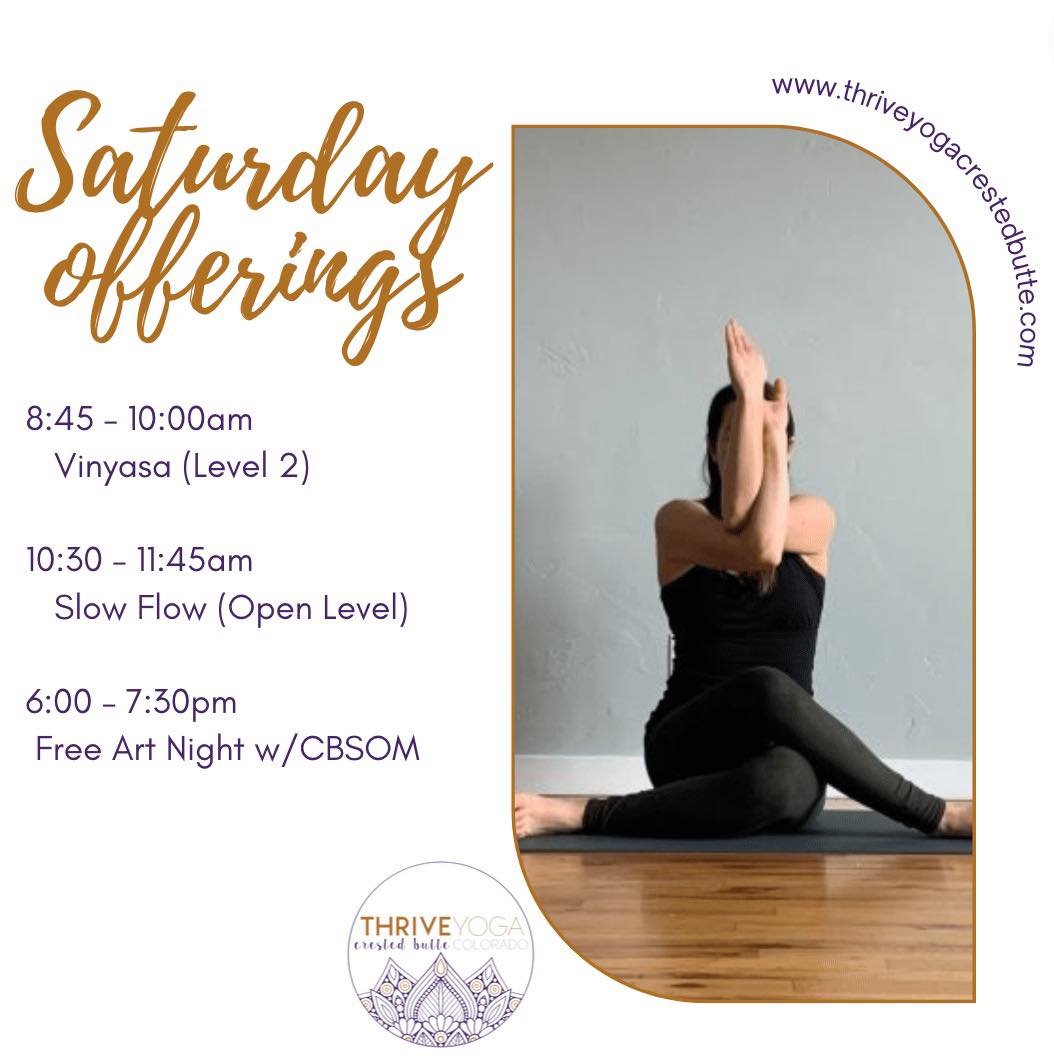 Every Saturday at Thrive Yoga 8:45 am to 7:30 pm.