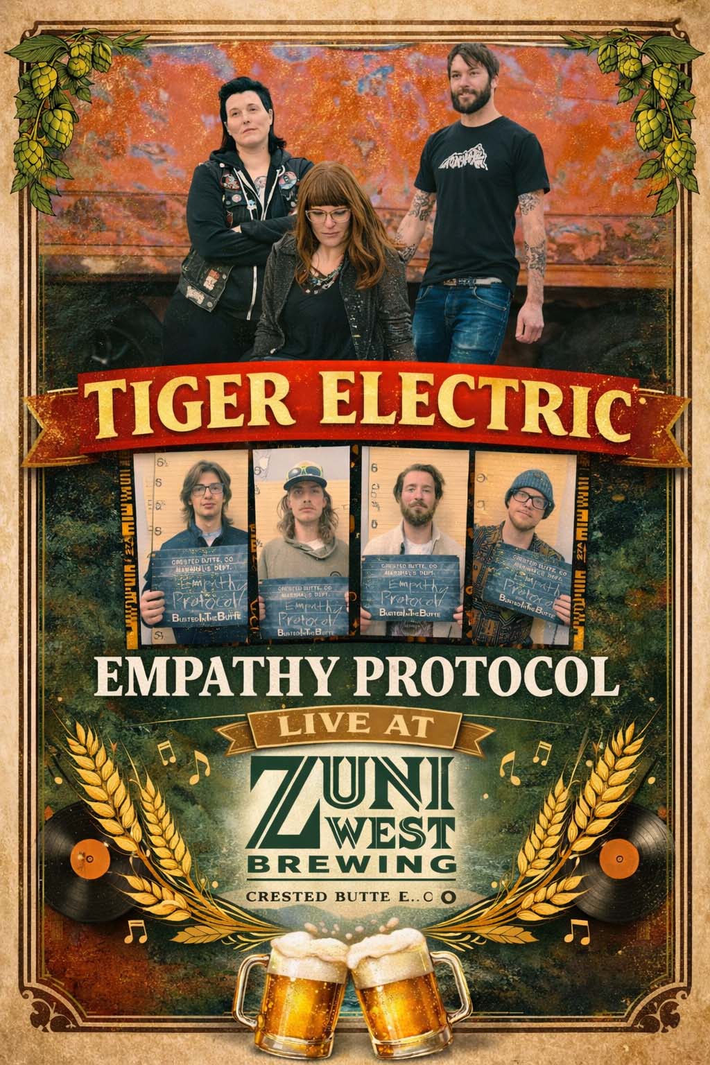 Get ready for a high-energy night of original sound and raw analog vibes as Tiger Electric teams up with Empathy Protocol for an unforgettable show at Zuni West Brewing.