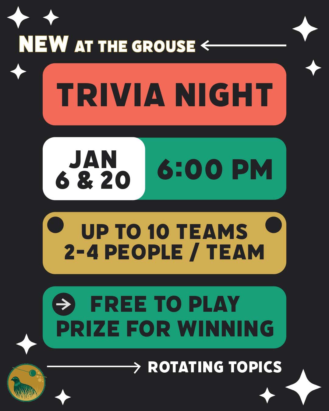 Trivia Night is here at Sage Grouse Lounge!
