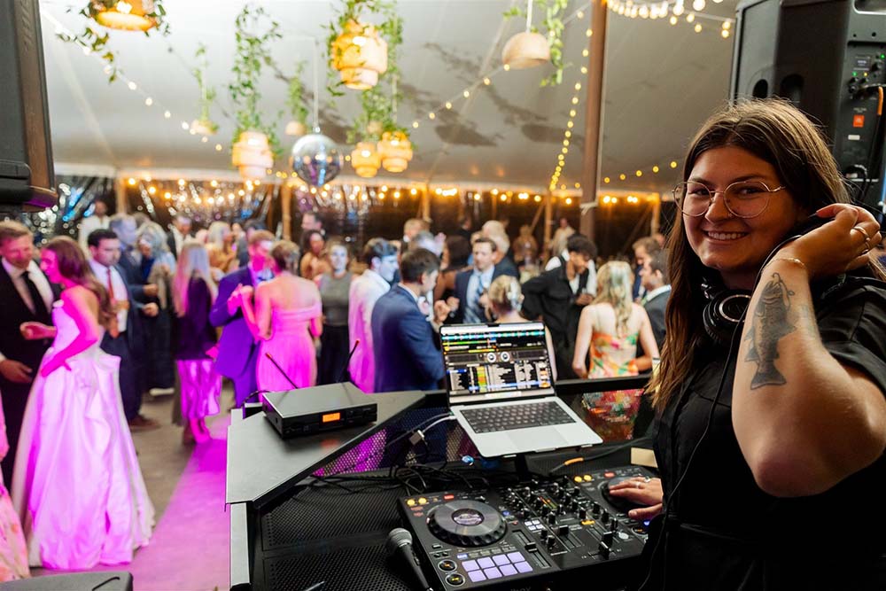 DJ Maisy Ramsey of White Buffalo DJs brings an energetic, modern, and crowd-focused style to every event, blending feel-good beats with smooth transitions that keep the dance floor moving.